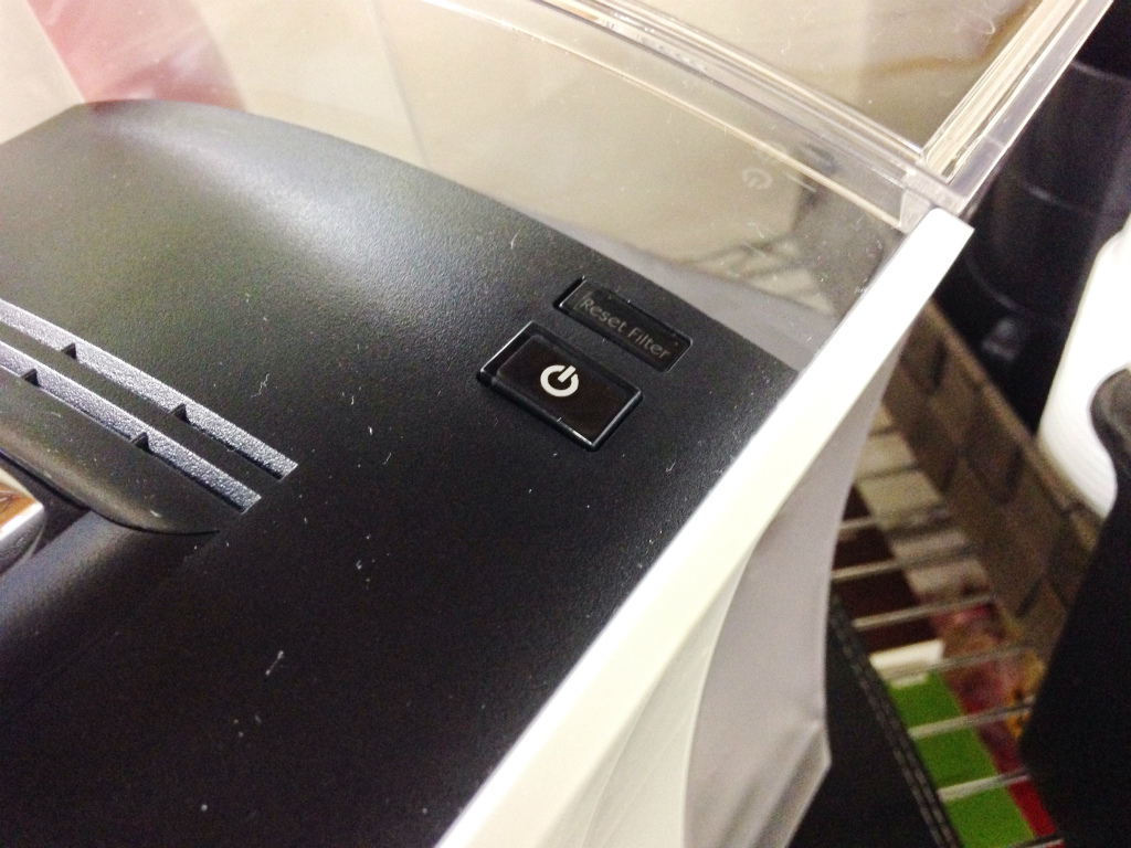 まず、コンセントが刺さってることを確認して、上にある電源ボタンを押します。